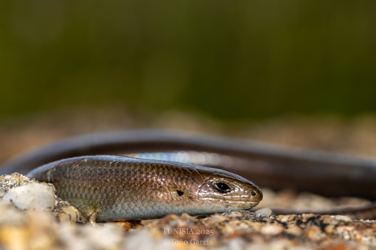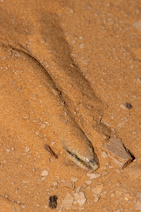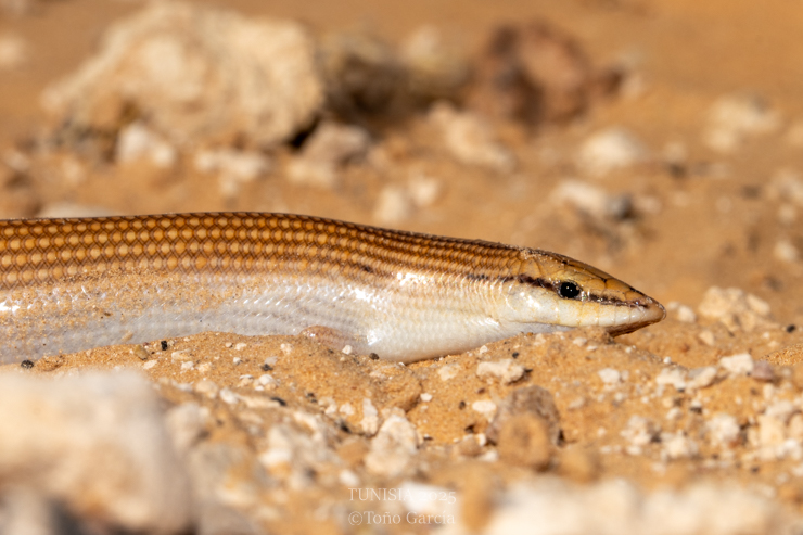 We visited the Trogonophis sp., spot and after some Chalcides ocellatus under stones, we could see two specimens of Trogonophis sp. A phylogenetic study showed that Tunisia and east Algeria populations represent a independent cryptic taxonomic unit of T. wiegmanni (Salvi et al., 2018).