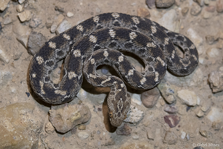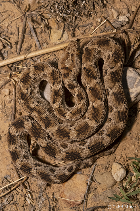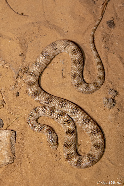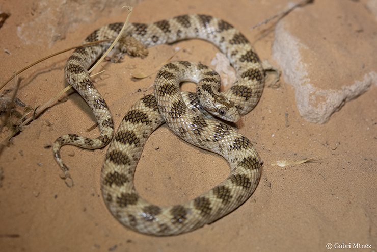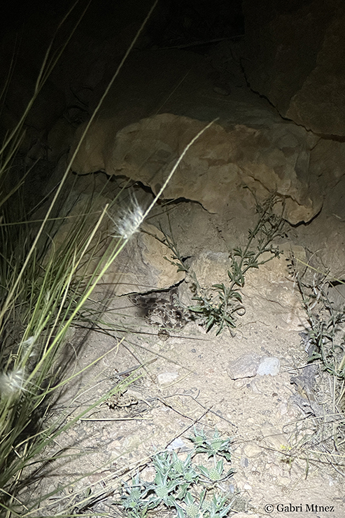 The night began and we were ready to action. We visited a spot with water and many rocks and with the sound of the calls of the Sclerophys mauritanicus and Pelophylax saharicus males in the back we could find a dead Psammophis schokari in strange circumstances, many Tarentola mauritanica, a Chameleo chamaeleon and 3 Echis pyramidum leucogaster. According to Arnold and collaborators (2009) the genetic distance between samples of Mauritania (leucogaster) and Egypt (pyramidum) is very low, and this together with some specimens of eastern Africa with white venter (“leuco-gaster”), suggest the idea of a unique species in Africa. In the map of these authors (based in previous works), the Tunisian specimens appear as E. pyramidum pyramidum. Another work of the same year used samples of Bou Hedma, and surprisingly, they appear in the ”leucogaster” clade, closer to the Morocco samples than with the Egypt ones-“pyramidum” clade (Pook et al., 2009). So, the Tunisia specimens must be considered Echis leucogaster or Echis pyramidum leucogaster. When we finished the night and we were ready to go for sleeping appeared a fourth Echis, the largest of the night.