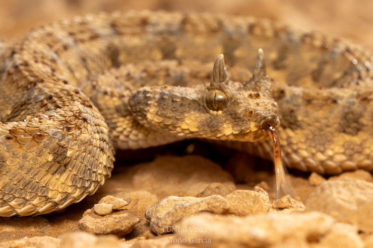 We woke up in our last day in Tunisia, and were ready for a long drive to Tunis capital thorough the coastal highway. We found a Mesalina guttulata under a rock and after 2 more Cerastes cerastes DOR of the previous night, in the 5th HICROW of the day we saw a juvenile Cerastes cerastes. Incredible the density of Cerastes cerastes in that rocky area apparently. We were extremely happy and few minutes later we saw a young adult much nicer, with grey-bluish marks in the dorsal area and head.
