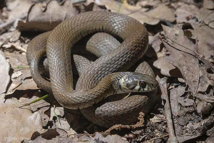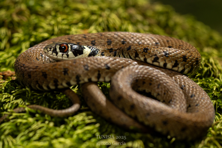 In our way to El Feijda NP we (Spanish and Ridha cars) would make a last stop in a water pond where from Google looks amazing for amphibians, similar to habitats where I found astreptophora in Morocco. The day was sunny and the temperature better than in the previous days. In the first stop in Ain Drahem-Bni Mtir area we only saw some Pelophylax saharicus and Discoglossus pictus. We visited a second water pond and after 2 minutes walking we saw a young Natrix astreptophora algerica moving in the leaves. We continued searching around and it was incredible to find also moving in the leaves a young adult Natrix astreptophora algerica.